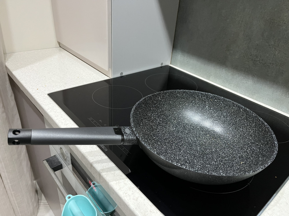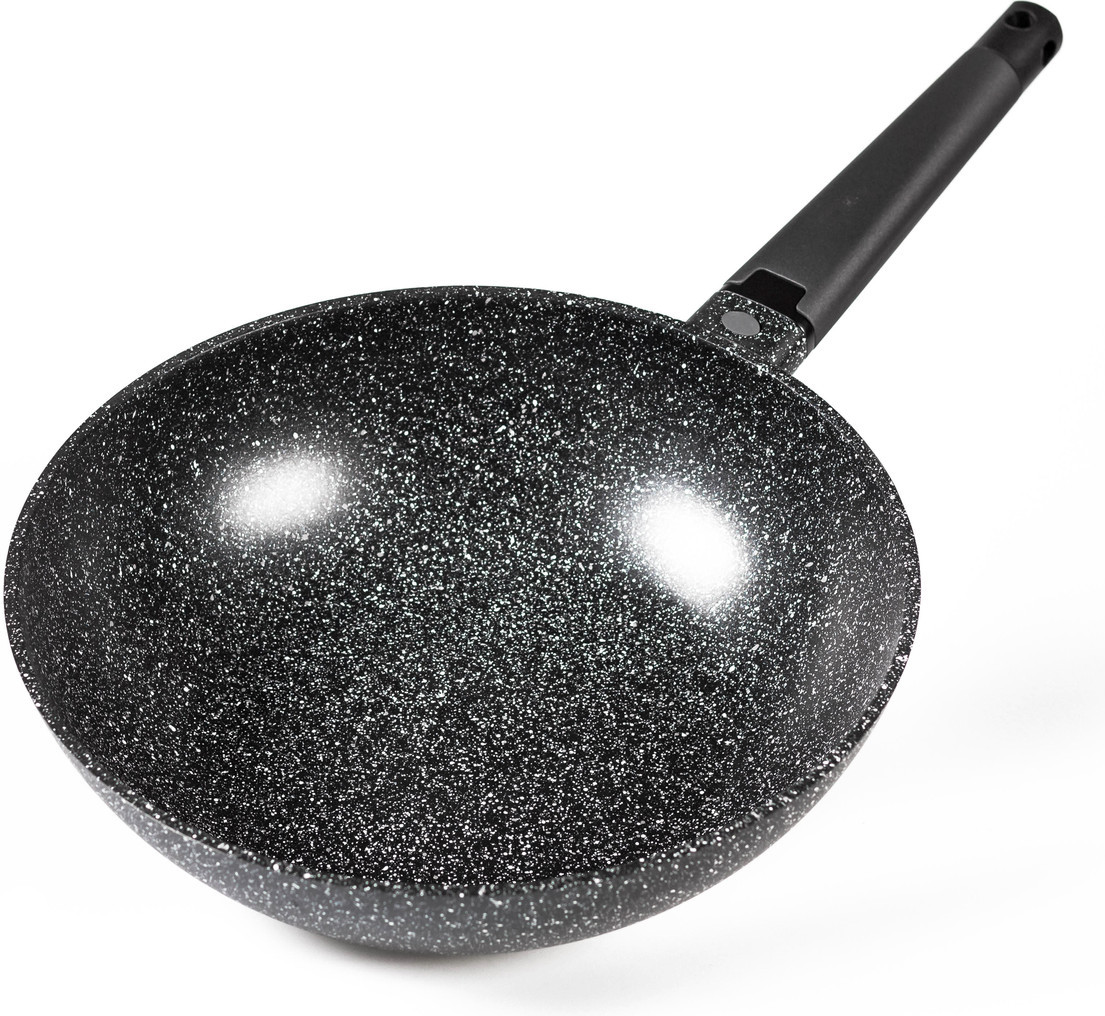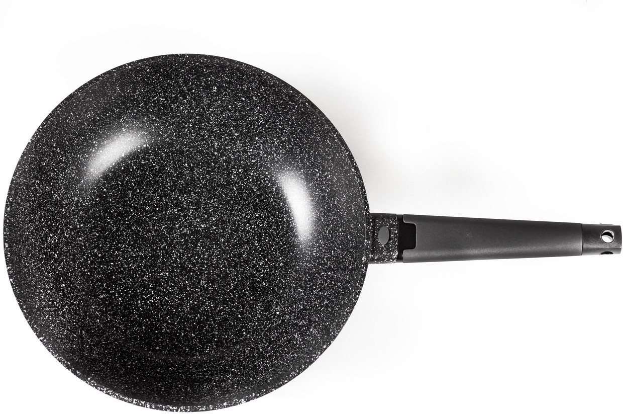 Рецепты для приготовления в Wok-сковороде пользуются большой популярностью. Гранитное покрытие поверхности предотвращает пригорание, что позволяет готовить с минимальным добавлением масла. Покрытие гранитной сковороды представляет собой мелкую гранитную крошку. Антипригарное покрытие отличается высокой прочностью и долговечностью, устойчивостью к царапинам. Подойдет для газовых, электрических, галогенных плит в стеклокерамике, спиральных электрических плит и низкотемпературных посудомоечных машин.