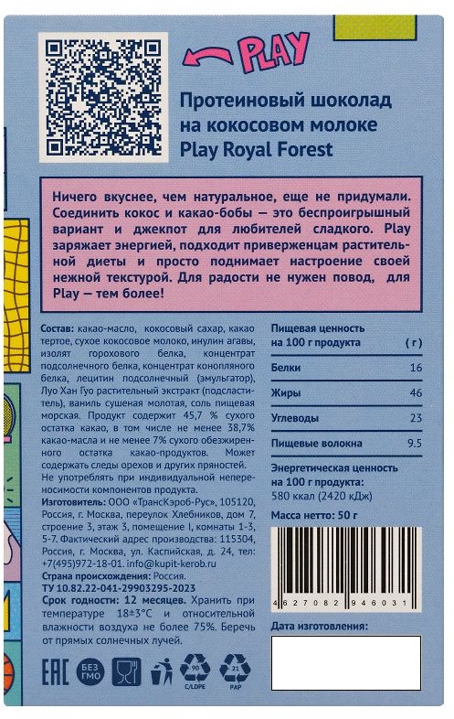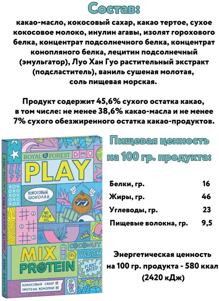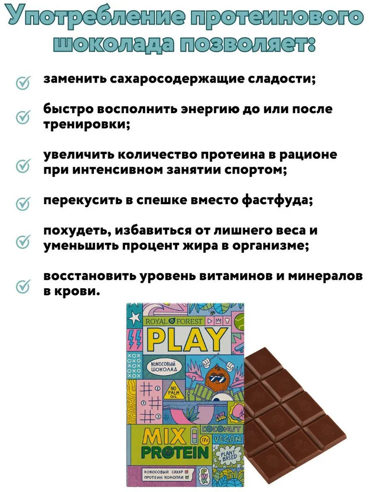 Royal Forest Шоколад протеиновый на кокосовом молоке «Play»