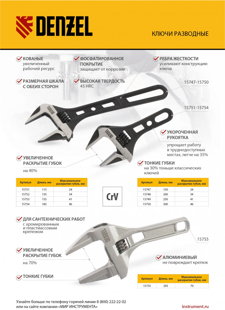 Denzel Ключ разводной кованый