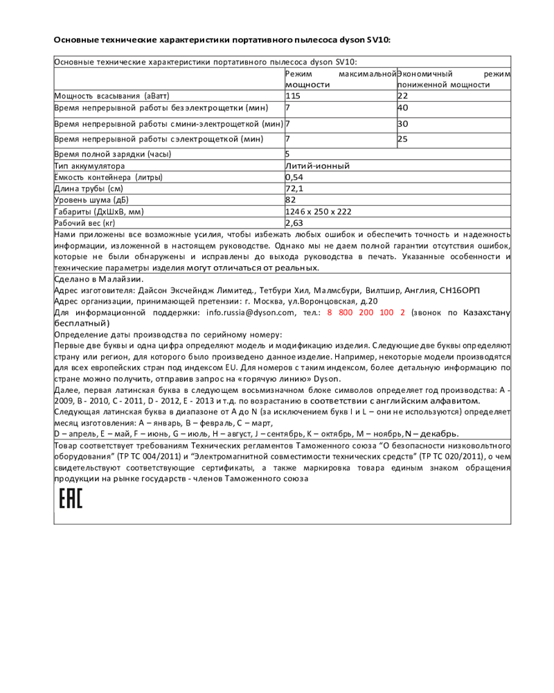 Пылесос оснащен сертифицированным Hepa-фильтром, который улавливает 99,97% частиц размером до 0,3 микрона, включая аллергены и бактерии. Dyson V8 Absolute легко превращается в ручной пылесос для быстрой очистки мебели, лестниц и автомобиля. Пылесос имеет гигиеничный механизм опорожнения бака, который позволяет избавиться от пыли и грязи одним движением. Пылесос также имеет удобную станцию зарядки, которая хранит и заряжает пылесос и все насадки.