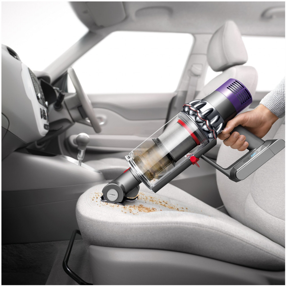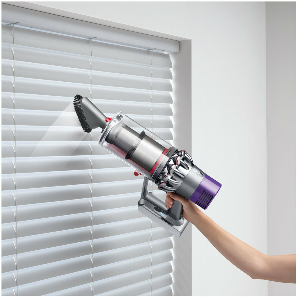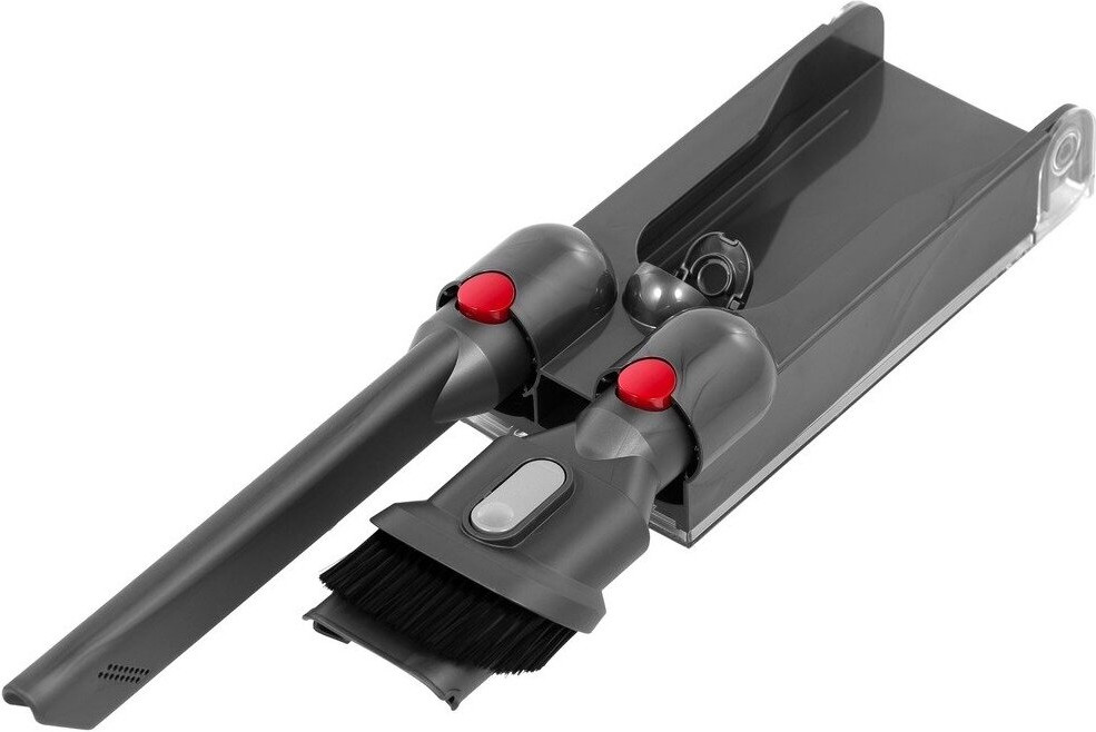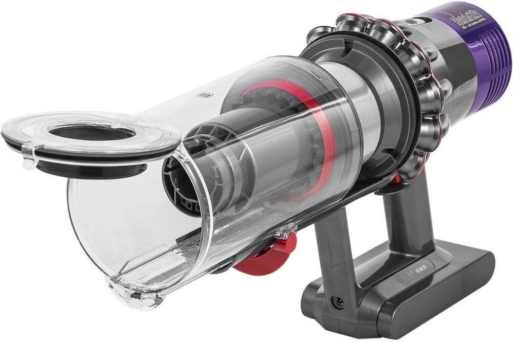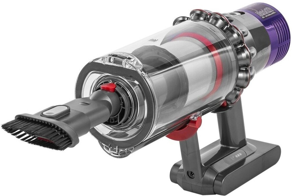 Пылесос имеет стильный футуристический дизайн, а встроенный аккумулятор позволяет ему работать без подзарядки в течение часа. В комплекте поставляется док-станция, которая позволяет полностью зарядить устройство за 3,5 часа. Сама док-станция удобно крепится на стене и не занимает много места. Пылесос Cyclone V10 Absolute имеет несколько насадок, которые позволяют индивидуально подойти к различным проблемным участкам и качественно устранить загрязнения.
