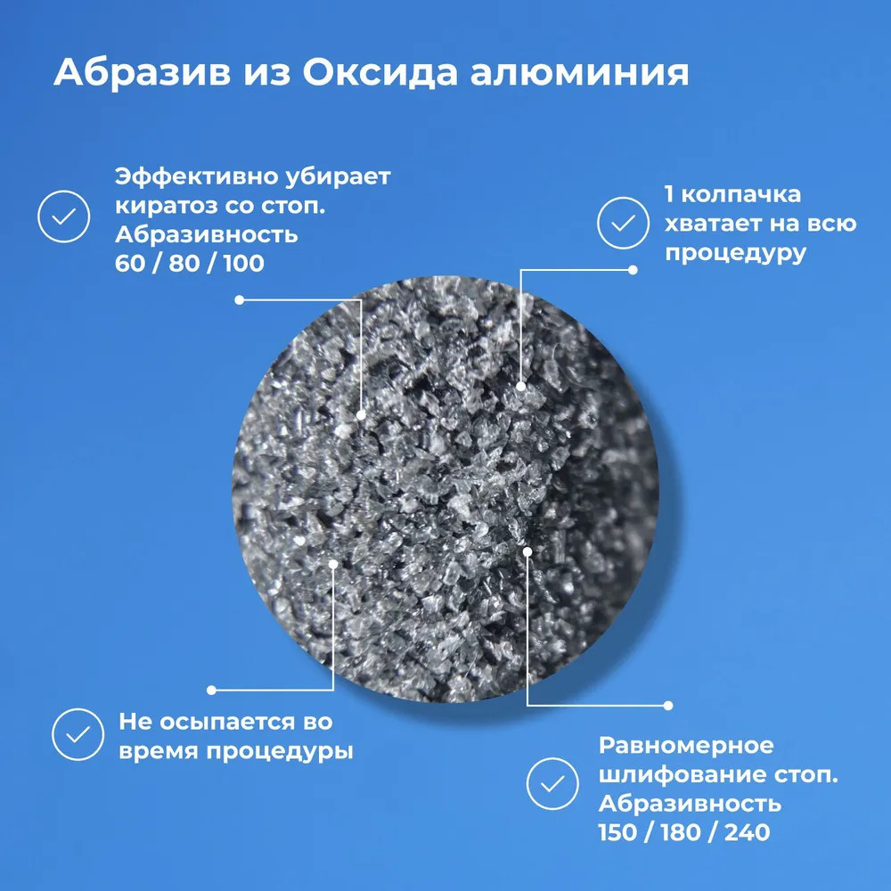 • активное, но деликатное воздействие на кожу. В зависимости от гритности колпачками можно обрабатывать даже серьезные ороговения;