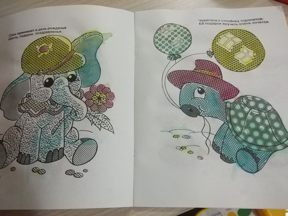 Вообще не понравилась раскраска, цвета после нанесения водой не яркие. Не рекомендую их заказывать.
