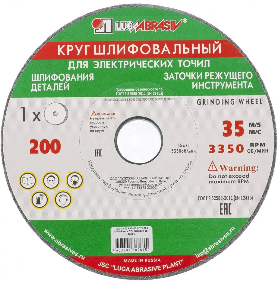 Шлифовальный круг — оснастка для электрических точил с посадочным диаметром 32 мм. Круг применяется для предварительного и комбинированного шлифования изделий из бронзы, чугуна, латуни и других твердых материалов, а также сталей, алюминия и меди. Эффективен при заточке режущих инструментов. Абразивный материал состоит из частиц высокотвердого зеленого карбида кремния, чем обусловлена высокая шлифующая способность круга.