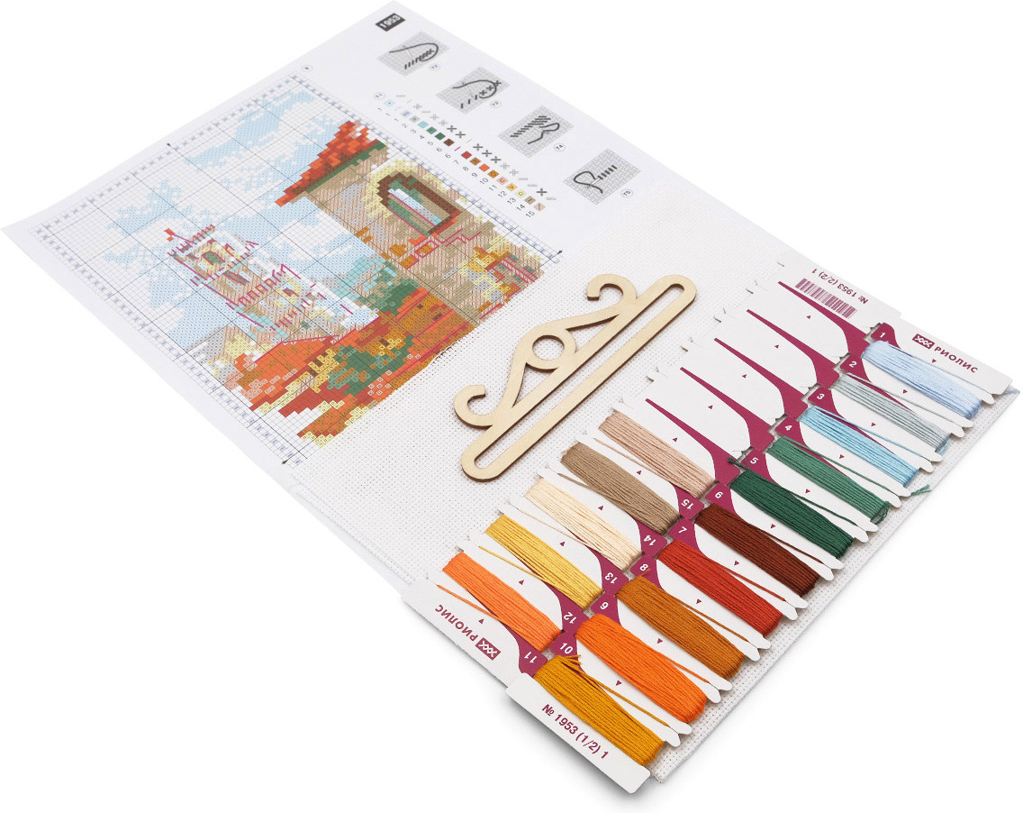 Чтобы вышивать крестиком, не потребуются особые навыки — достаточно проявить терпение, усидчивость и аккуратность. В наборе для вышивки крестом «Крыши Пизы» используется мулине Anchor — эти нитки яркие, равномерные по всей длине, без узелков и утолщений, что позволяет добиться аккуратных стежков. В качестве основы используется канва Aida 14 каунта. Она прекрасно подходит для схем с подробной детализацией, но при этом позволяет выкладывать достаточно крупные стежки. При работе с такой канвой, скорее всего, не потребуется увеличительное стекло. |