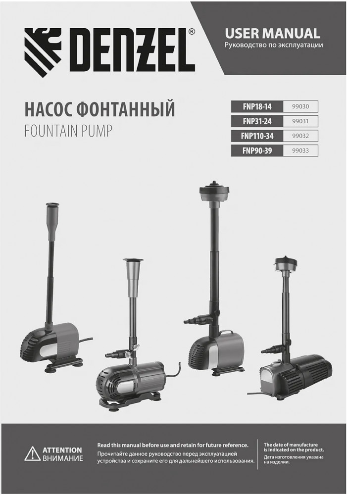 Denzel Насос фонтанный Denzel FNP110-34-20% +706