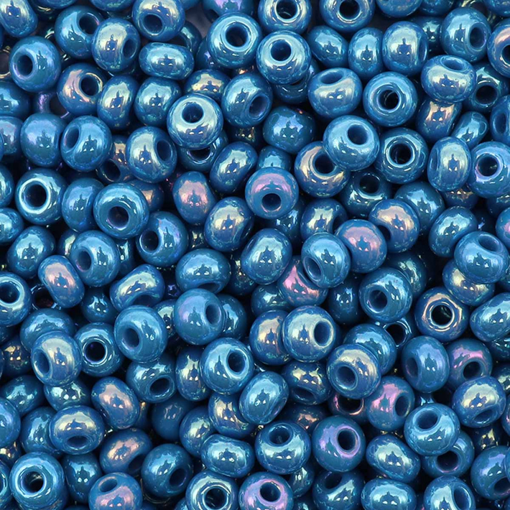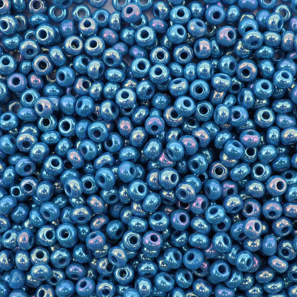 Preciosa Бисер непрозрачный с радужным покрытием, цвет 34220 темно-голубой с бирюзовым оттенком