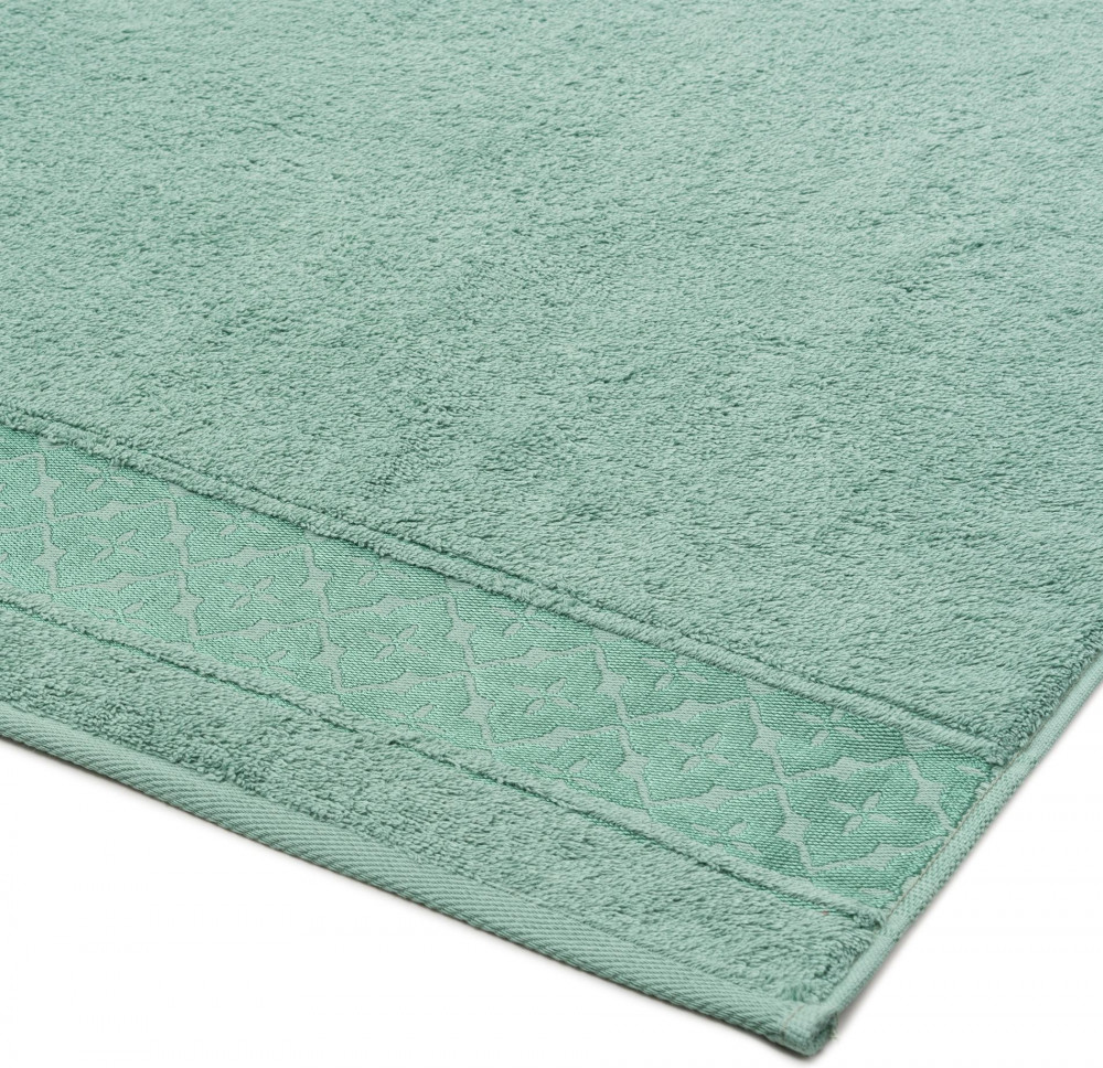 После стирки полотенце осталось мягким. Цвет холодный серо-бежевый, аккуратный орнамент с одного края. Мы довольны качеством, спасибо!