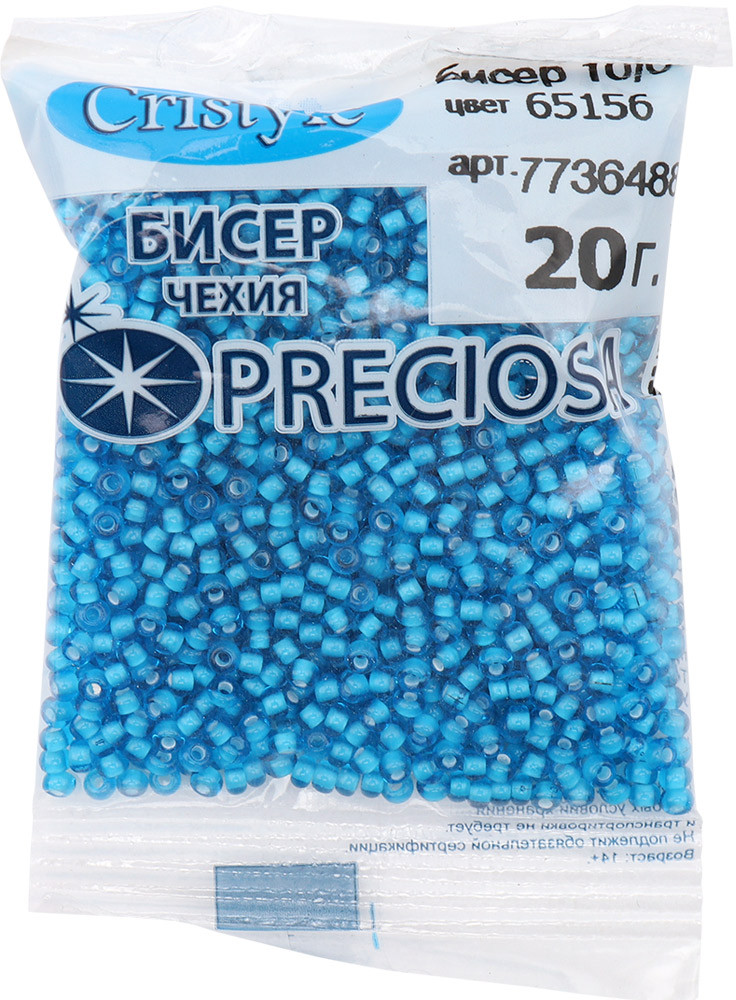Preciosa Бисер прозрачный с цветным центром (хамелеон), цвет 65156 бирюзово-голубой с белым