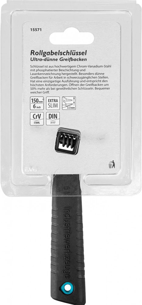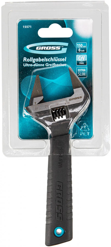 Разводной ключ Gross 15571 длиной 150 мм, из стали CrV, с ультратонкими губками, оптимален для монтажа и демонтажа крепежных элементов диаметром до 34 мм. Имеет широкую область применения: сантехнические работы, мелкий бытовой ремонт, полупрофессиональное использование и т. д. Благодаря ультратонким губкам инструмент особенно удобен для работы в труднодоступных местах.