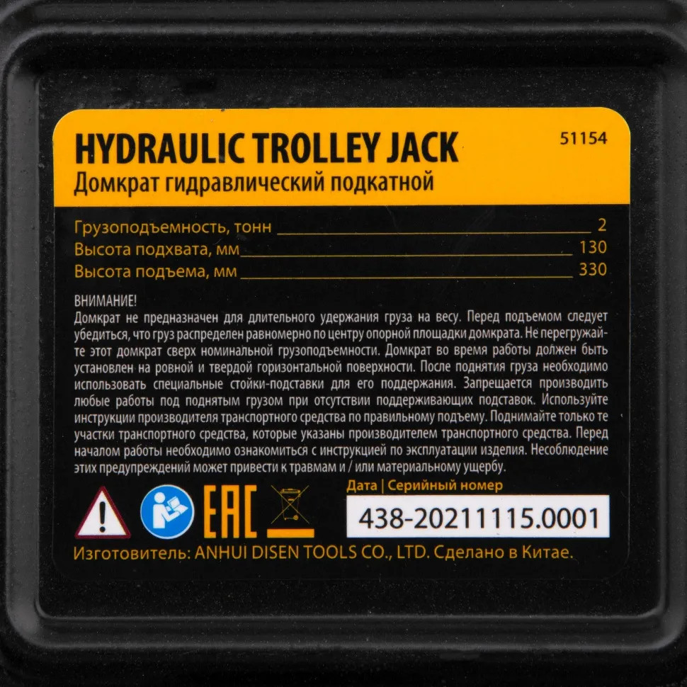 Denzel Домкрат гидравлический подкатной с фиксатором