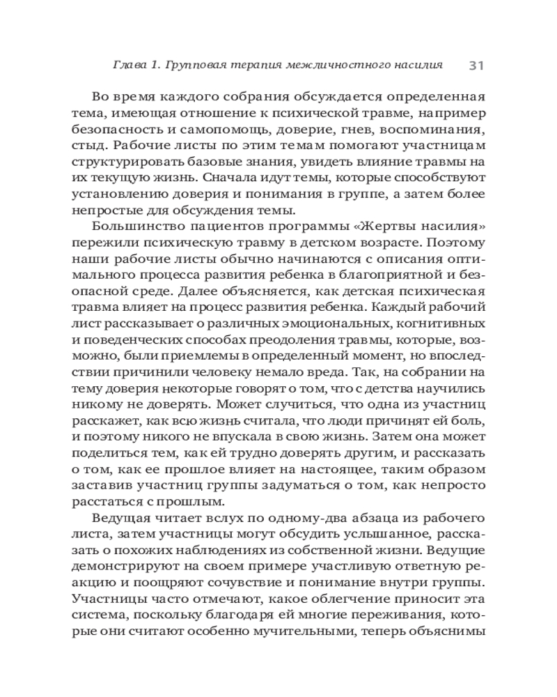 💳 Оплатить за товар можно при получении 🇰🇿 Есть бесплатная доставка по Казахстану 🎁 Копите бонусы с каждой покупки Серия: Психология для профессионалов Книга описывает психотерапевтический подход для групповой работы с людьми, которые только начинают лечение межличностной травмы. Информационная группа для переживших такую травму является первым этапом в рамках поэтапной модели терапии Джудит Герман. Цель группы — научить ее участников навыкам самопомощи, заботе о собственной безопасности и обретению стабильности. Расшифровки реальных сессий служат наглядным примером того, как специалист может помочь членам группы осмыслить их травматический опыт, научиться новым способам физического и душевного восстановления и развить сострадание к себе и другим людям, получившим психологическую травму. Книга содержит исчерпывающие рекомендации по применению данной модели психотерапии, практические советы и рабочие материалы. |