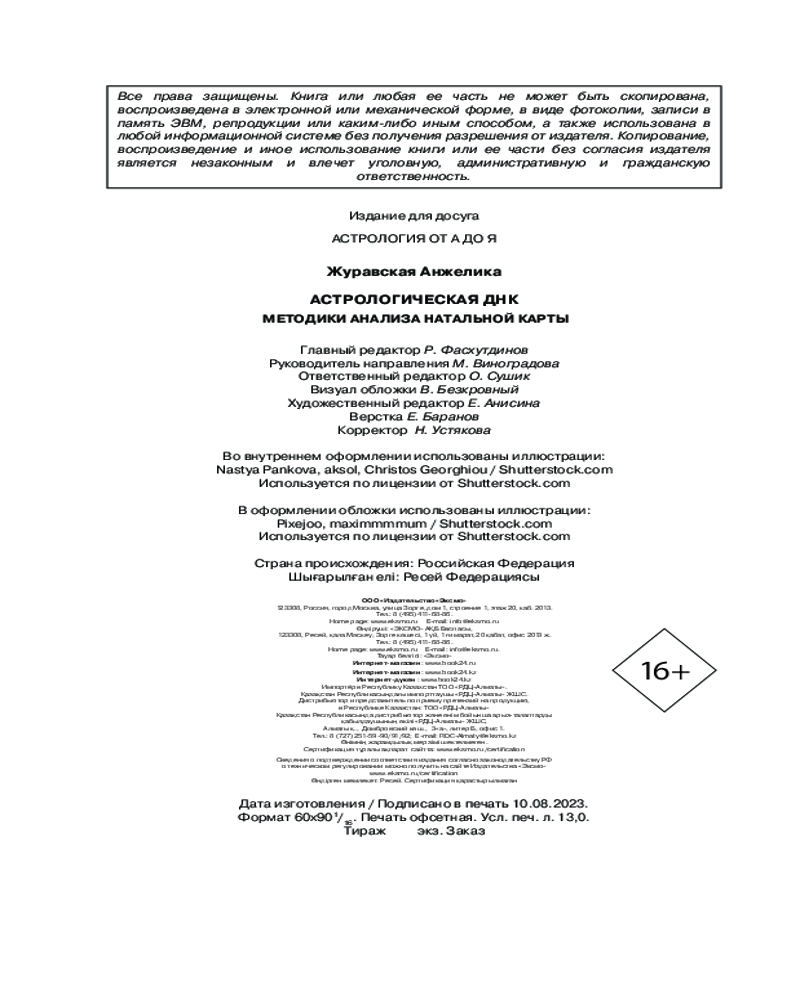 💳 Оплатить за товар можно при получении 🇰🇿 Есть бесплатная доставка по Казахстану 🎁 Копите бонусы с каждой покупки Серия: Астрология от А до Я Учебник «Астрологическая ДНК. Методики анализа натальной карты» подойдет астрологам-практикам, которые уже получили базовые знания по астрологии и решили взяться за тематический анализ натальной карты. |