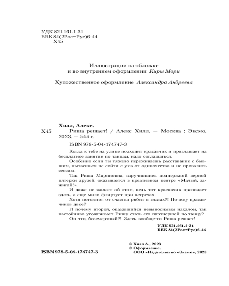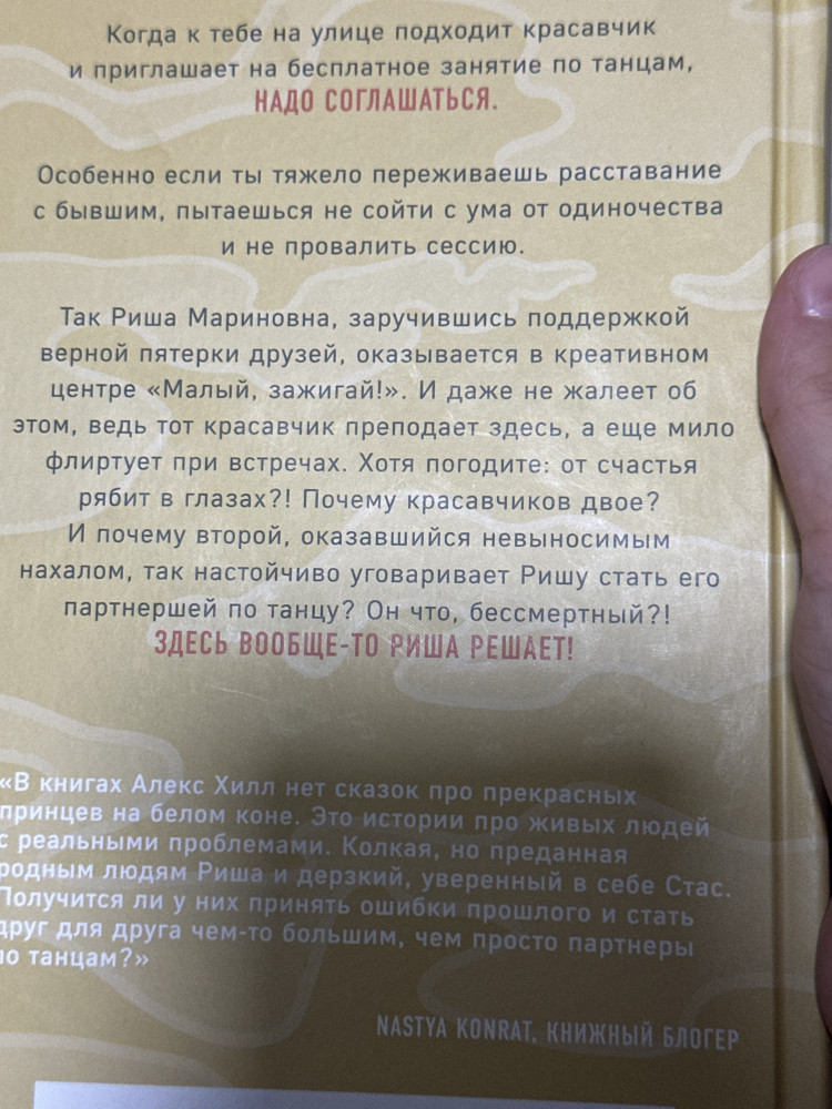 💳 Оплатить за товар можно при получении 🇰🇿 Есть бесплатная доставка по Казахстану от 1 дня 🎁 Копите бонусы с каждой покупки Серия: Young Adult. Инстахит. Романтика Танцевальная новинка от автора бестселлеров «Она любит плохих парней» и «Метод книжной героини» Алекс Хилл! |