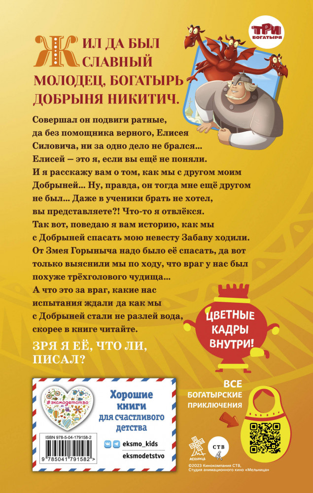 💳 Оплатить за товар можно при получении 🇰🇿 Есть бесплатная доставка по Казахстану от 1 дня 🎁 Копите бонусы с каждой покупки Серия: Детск. Три богатыря. Книги по мультфильмам Новинка по мотивам любимого мультфильма «Добрыня Никитич и Змей Горыныч. История Елисея»! Теперь можно не только посмотреть любимую историю, но и прочитать! |