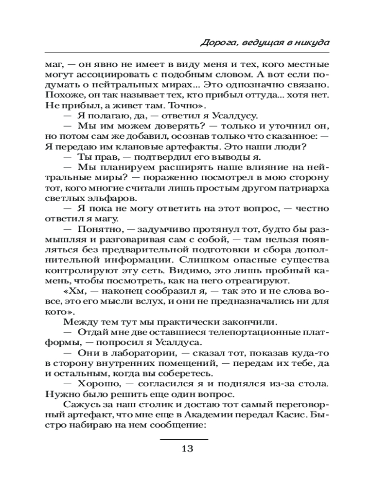 💳 Оплатить за товар можно при получении 🇰🇿 Есть бесплатная доставка по Казахстану от 1 дня 🎁 Копите бонусы с каждой покупки Серия: Боевая фантастика Когл поделился с Лексом и его командой одной из своих тайн. Той, что и позволила ему стать не просто воровской столицей Империи, но и вратами, ведущими за пределы этого мира. И теперь Лекс со своим кланом смог взять под контроль эти врата. Но контроль будет не полным, если осуществить его лишь с одной стороны, а потому дальнейший путь Лекса и его людей лежит по ту сторону портала. И вот они уже там. Только точно ли это то самое место, где они желали оказаться? Ведь перед ними мертвый мир и сила, сметающая со своего пути все живое. И куда эта сила их забросит. На это можно будет ответить, пройдя дорогой, ведущей в никуда. |