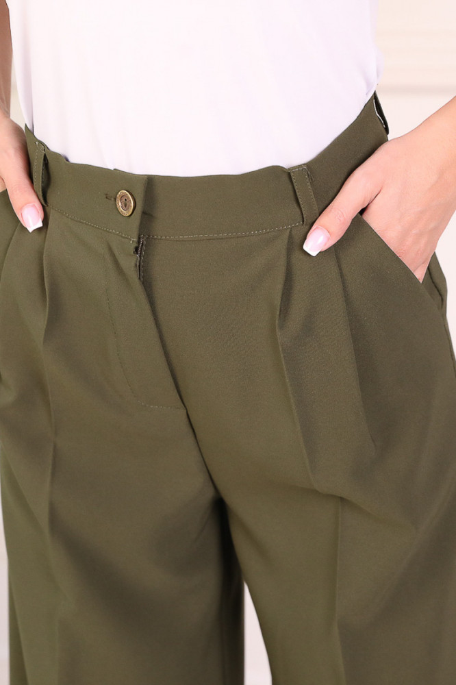Прекрасно пошиты, внутри оверложено. Фасон очень понравился. Складки у пояса аккуратно заложены. Ткань приятная. Но...оказались маленькими.