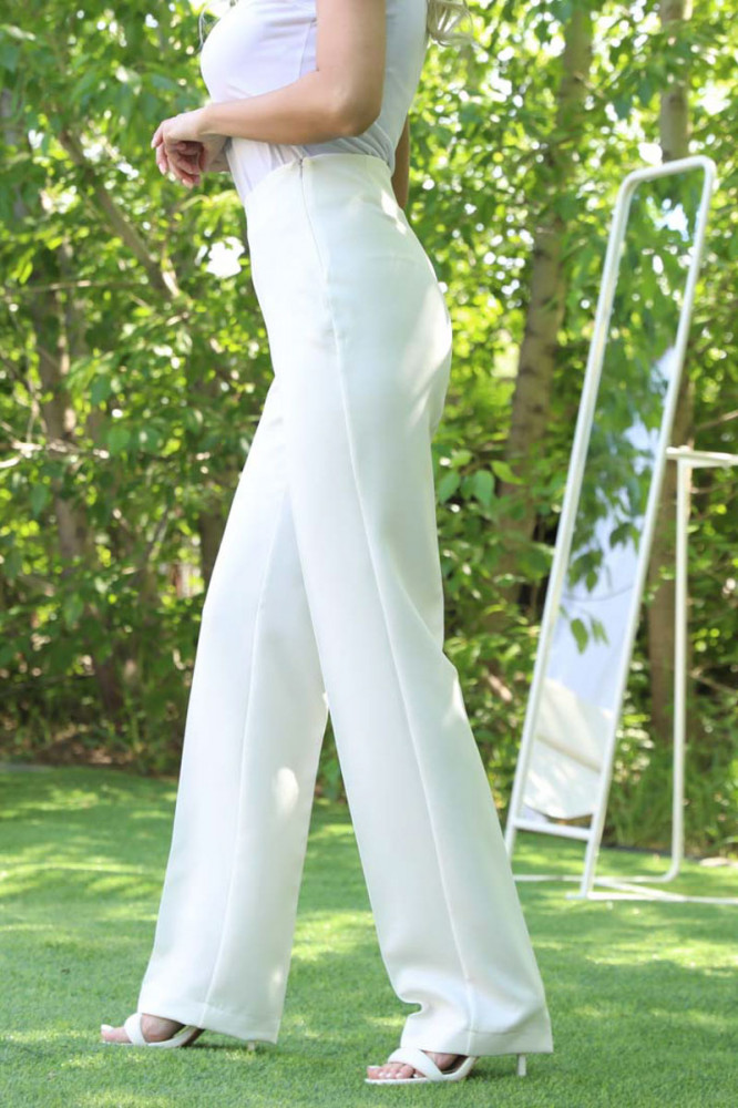 Высокая посадка, плотное облегчение, оформление стрелки спереди швейной строчкой - это очень облегчает глажку после стирки. Полагала, что ткань более плотная тяжёлая, по крайней мере, такой смотрится на фото. На самом деле брюки можно сказать лёгкие. Выписала ещё в двух цветах сером и темно зелёном.