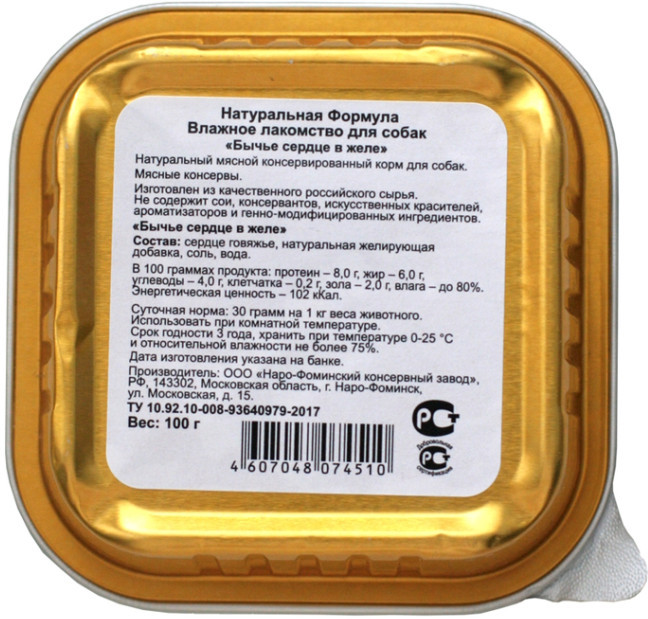 Отзывы «Корм для собак «Бычье сердце в желе»»