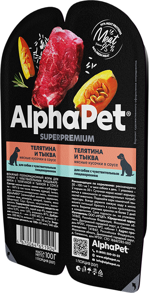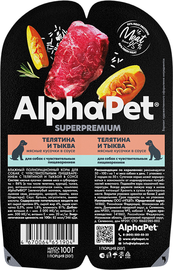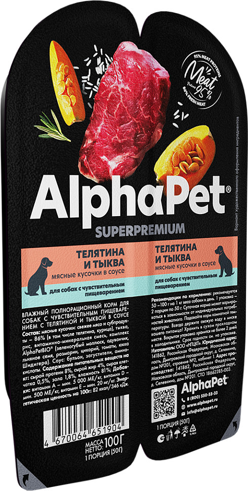 AlphaPet Корм для собак «Телятина и тыква»