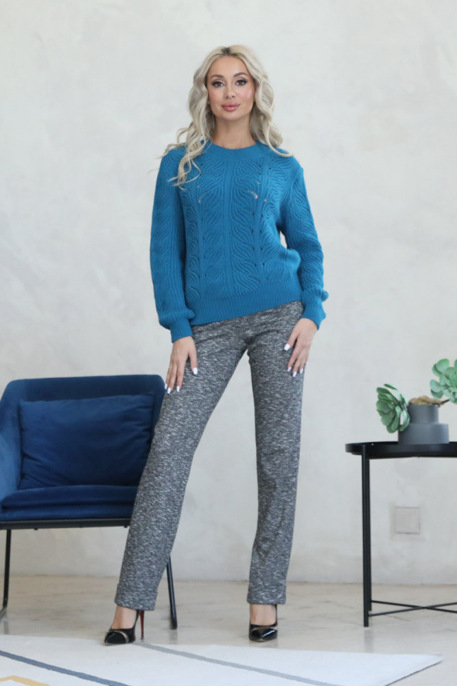 Очень красивый цвет, мягкий, пушистый, в составе мохер и натуральная шерсть, аккуратно связан, красивый узор.