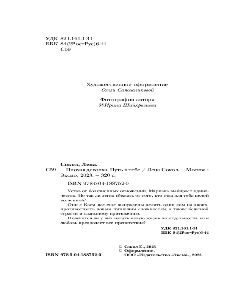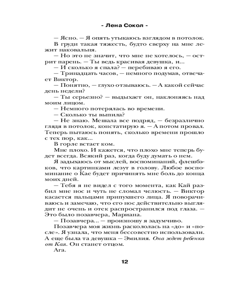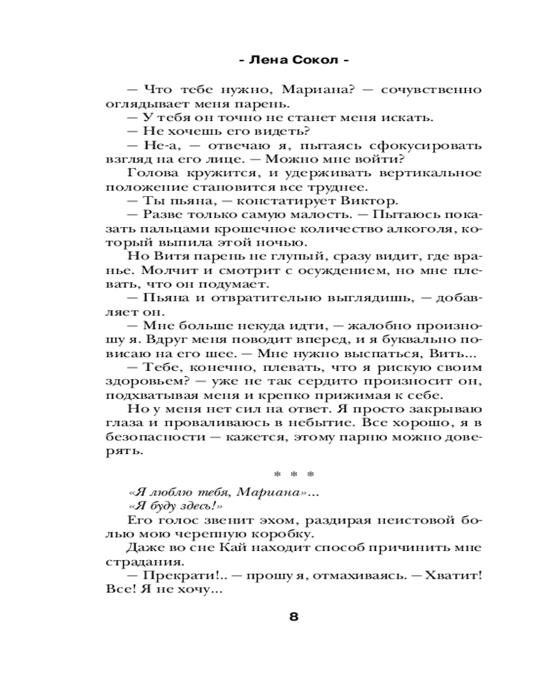 💳 Оплатить за товар можно при получении 🇰🇿 Есть бесплатная доставка по Казахстану от 1 дня 🎁 Копите бонусы с каждой покупки Серия: Романтика Лены Сокол Предательство самого близкого человека разрушило жизнь Марианы до основания. Обида, боль, злость — вот чем наполнился ее мир. Только сердце разрывается от желаний: вернуться к Каю, простить все обиды и снова стать счастливой или спасти себя, оставшись в одиночестве. Но как сбежать от парня, который стал для тебя целой вселенной, особенно, если он продолжает жить в твоем доме? |