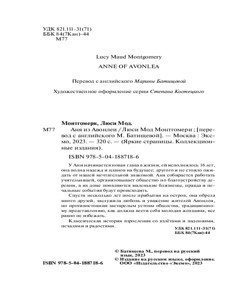 Аня из Авонлеи. Лимитированный дизайн-20% +127 переплет картинка бумага обложка