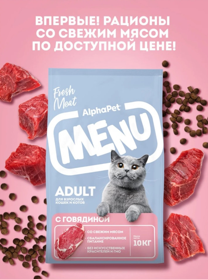 AlphaPet Корм для взрослых кошек и котов с говядиной