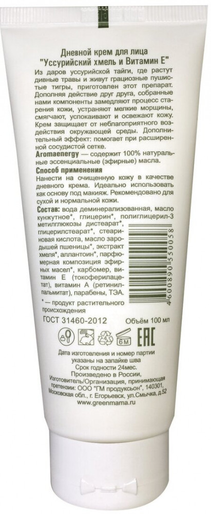 Green Mama Крем для лица дневной антивозрастной «Уссурийский хмель и витамин Е»