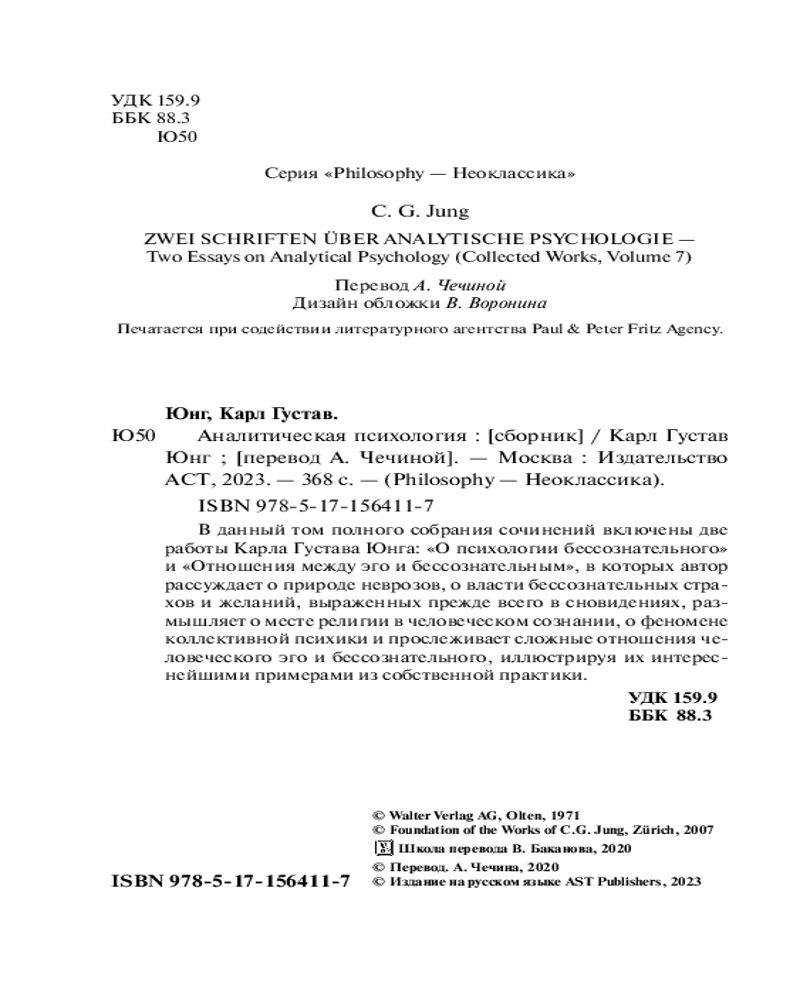 💳 Оплатить за товар можно при получении 🇰🇿 Есть бесплатная доставка по Казахстану от 1 дня 🎁 Копите бонусы с каждой покупки Серия: Philosophy — неоклассика В данный том полного собрания сочинений включены две работы Карла Густава Юнга: «О психологии бессознательного» и «Отношения между эго и бессознательным», в которых автор рассуждает о природе неврозов, о власти бессознательных страхов и желаний, выраженных прежде всего в сновидениях, размышляет о месте религии в человеческом сознании, о феномене коллективной психики, и прослеживает сложные отношения человеческого эго и бессознательного, иллюстрируя их интереснейшими примерами из собственной практики. |