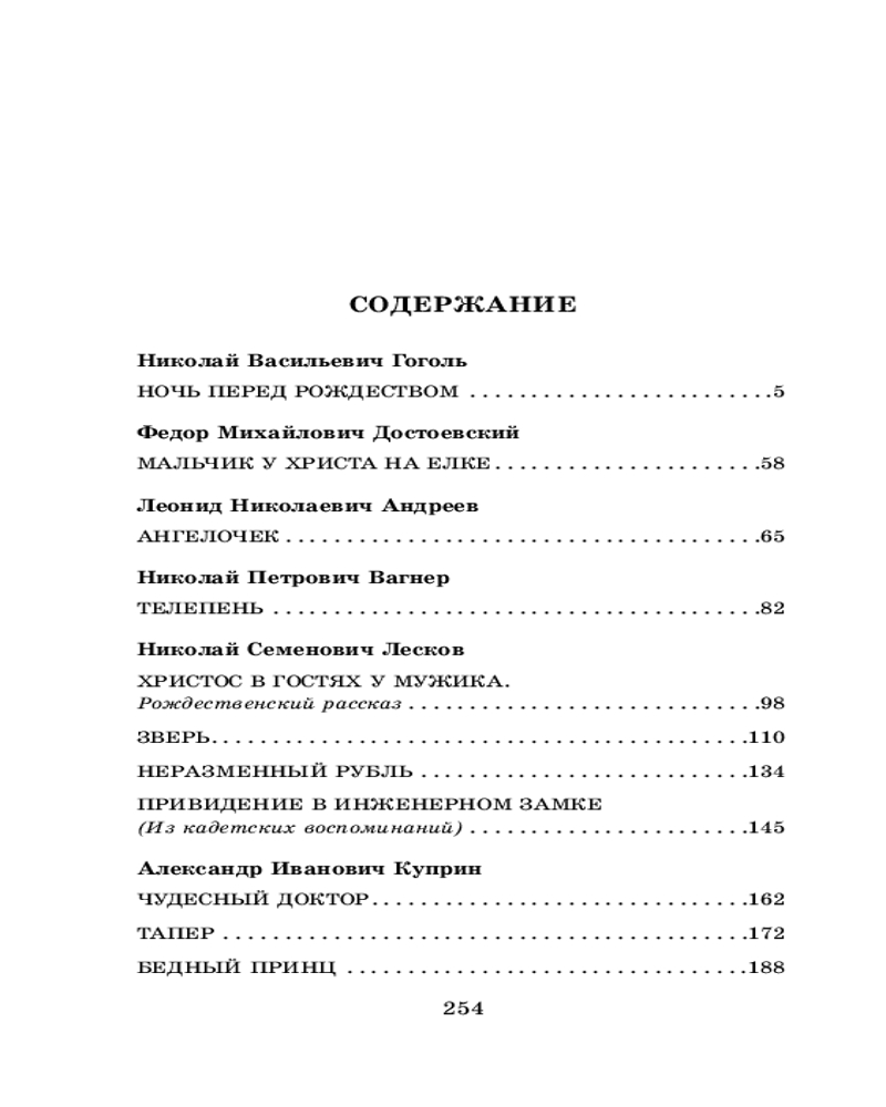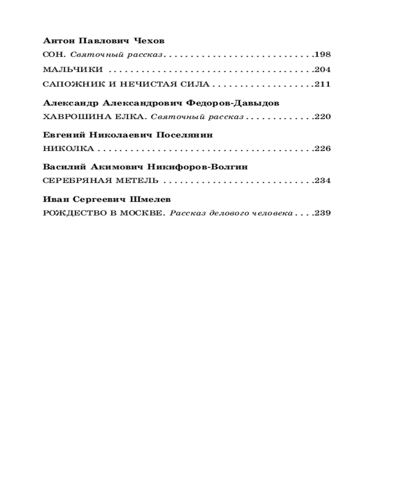 Серия: Школьное чтение Рождество в России было самым любимым и долгожданным праздником. Народные фольклорные традиции — колядки, ряжения, гадания, святочные рассказы — создавали особое настроение церковного христианского праздника. Все это отразилось в святочных рассказах русских писателей, отвечающих на ожидание рождественского волшебства и детскую готовность принимать на веру самые сказочные сюжеты. Все события в святочном рассказе, как правило, разворачиваются за одну рождественскую ночь, в течение которой герои переживают события, позволяющие им духовно измениться. Основное в святочном рассказе — ценность христианской добродетели и нравственности. Рождественские рассказы призывают нас к тому, что человек всегда должен быть готов поделиться частичкой своего душевного тепла с другими, и тогда обязательно произойдет настоящее Рождественское чудо. Именно об этом святочные рассказы и повести Н. Гоголя, Ф. Достоевского, Л. Андреева, Н. Лескова, А. Куприна, И. Шмелева и др. |