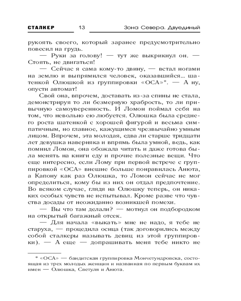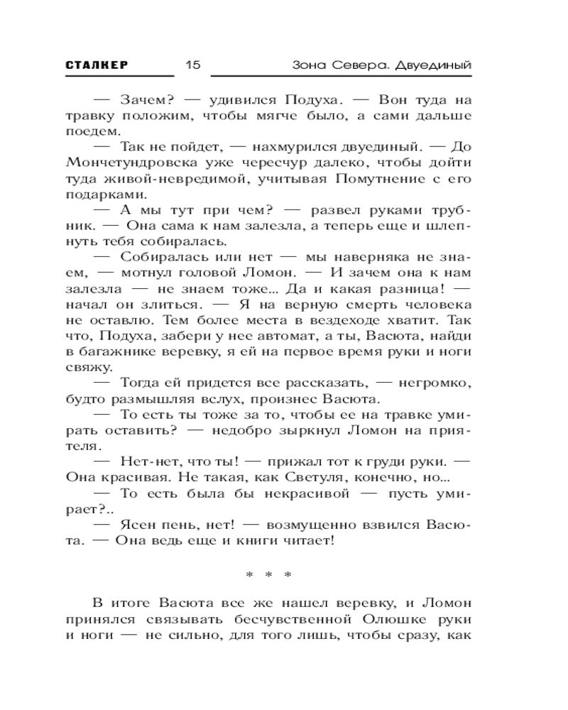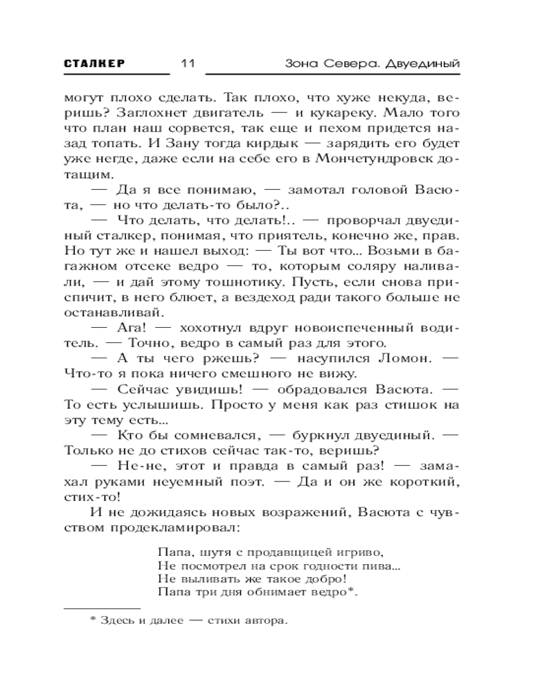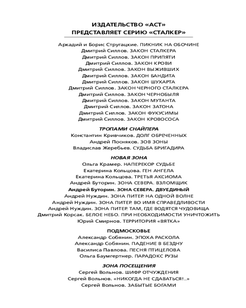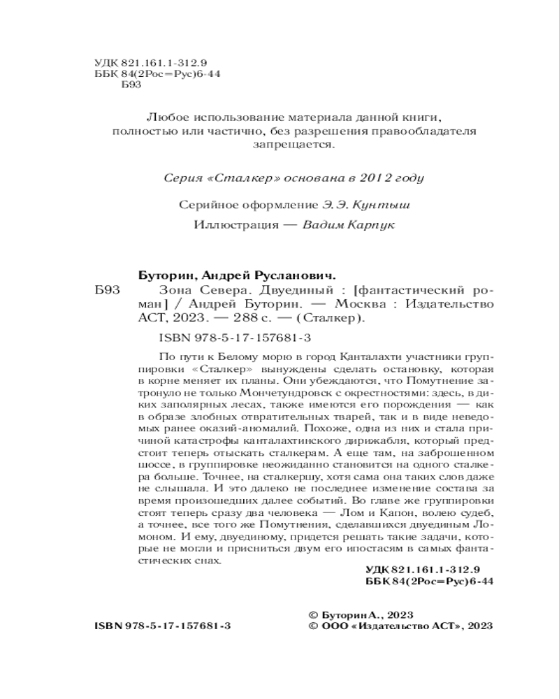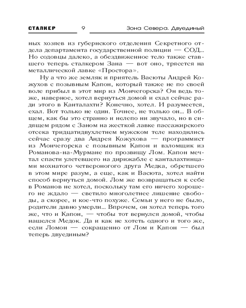 💳 Оплатить за товар можно при получении 🇰🇿 Есть бесплатная доставка по Казахстану от 1 дня 🎁 Копите бонусы с каждой покупки Серия: Сталкер По пути к Белому морю в город Канталахти участники группировки «Сталкер» вынуждены сделать остановку, которая в корне меняет их планы. Они убеждаются, что Помутнение затронуло не только Мончетундровск с окрестностями: здесь, в диких заполярных лесах, также имеются его порождения — как в образе злобных отвратительных тварей, так и в виде неведомых ранее оказий-аномалий. Похоже, одна из них и стала причиной катастрофы канталахтинского дирижабля, который предстоит теперь отыскать сталкерам. А еще там, на заброшенном шоссе, в группировке неожиданно становится на одного сталкера больше. Точнее, на сталкершу, хотя сама она таких слов даже не слышала. И это далеко не последнее изменение состава за время произошедших далее событий. Во главе же группировки стоят теперь сразу два человека — Лом и Капон, волею судеб, а точнее, все того же Помутнения, сделавшихся двуединым Ломоном. И ему, двуединому, придется решать такие задачи, которые не могли и присниться двум его ипостасям в самых фантастических снах. |