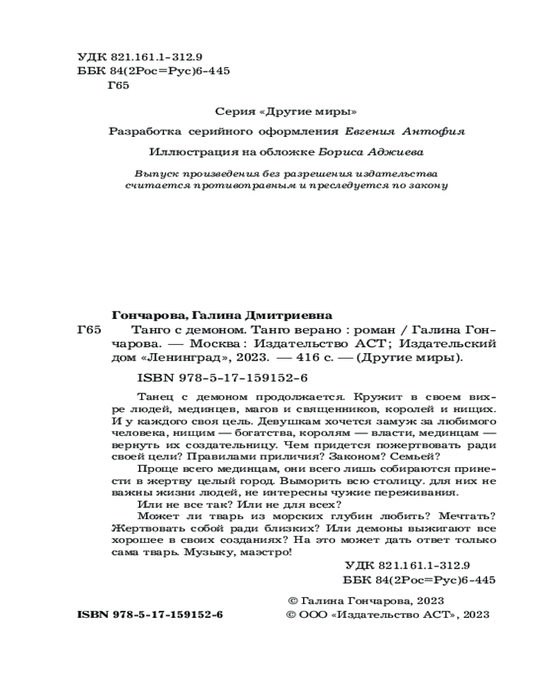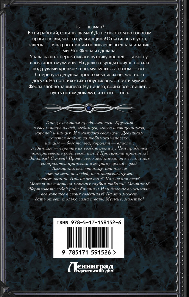 💳 Оплатить за товар можно при получении 🇰🇿 Есть бесплатная доставка по Казахстану от 1 дня 🎁 Копите бонусы с каждой покупки Серия: Другие миры Танец с демоном продолжается. Кружит в своем вихре людей, мединцев, магов и священников, королей и нищих. И у каждого своя цель. Девушкам хочется замуж за любимого человека, нищим — богатства, королям — власти, мединцам — вернуть их создательницу. Чем придется пожертвовать ради своей цели? Правилами приличия? Законом? Семьей? |