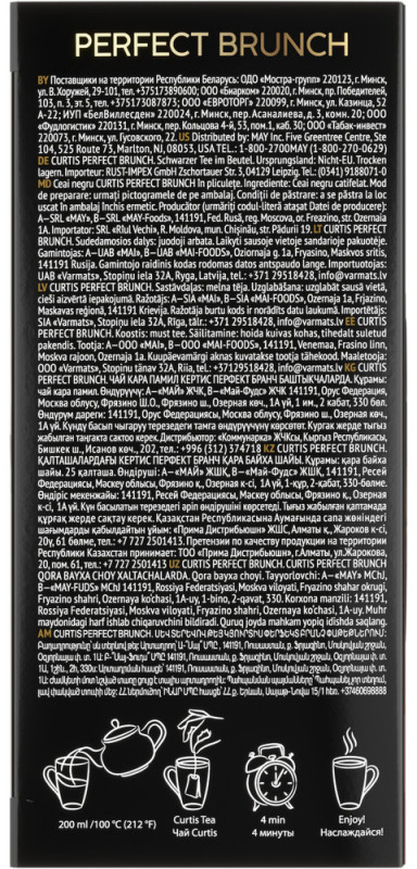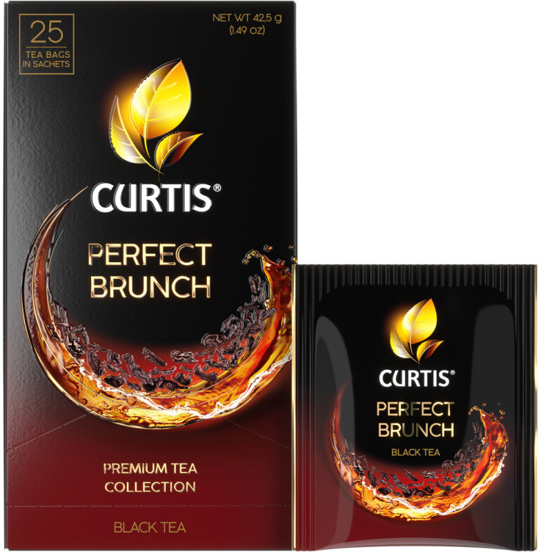 Насыщенный чёрный чай в пакетиках с тонким послевкусием. Найди вдохновение для каждого дня в чашке ароматного чая Curtis Perfect Brunch.