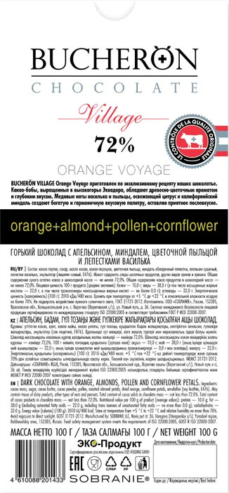 Bucheron Шоколад горький с апельсином, миндалем, цветочной пыльцой и васильком