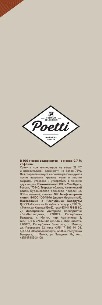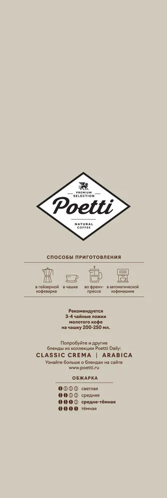 💳 Оплатить за товар можно при получении 🇰🇿 Есть бесплатная доставка по Казахстану от 1 дня 🎁 Копите бонусы с каждой покупки «Poetti daily» — коллекция натурального кофе высокого качества на каждый день. Бренды созданы мастерами с многолетним опытом обжарки зерен и профессиональными бариста, чтобы вы в любое время зарядились энергией со вкусом! |