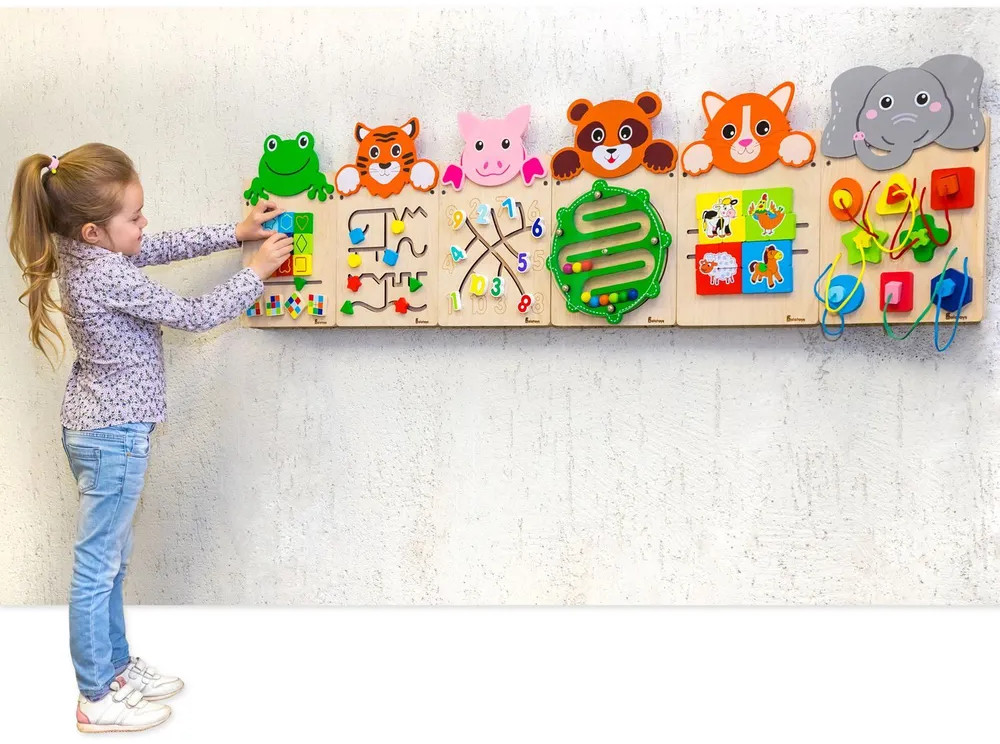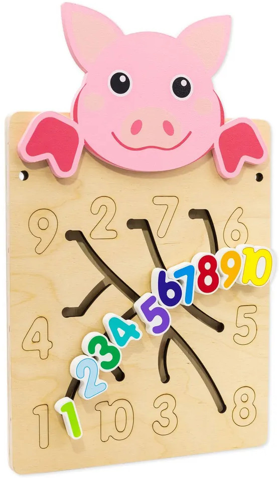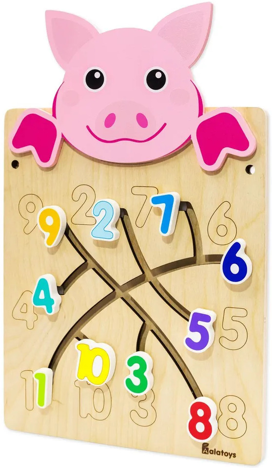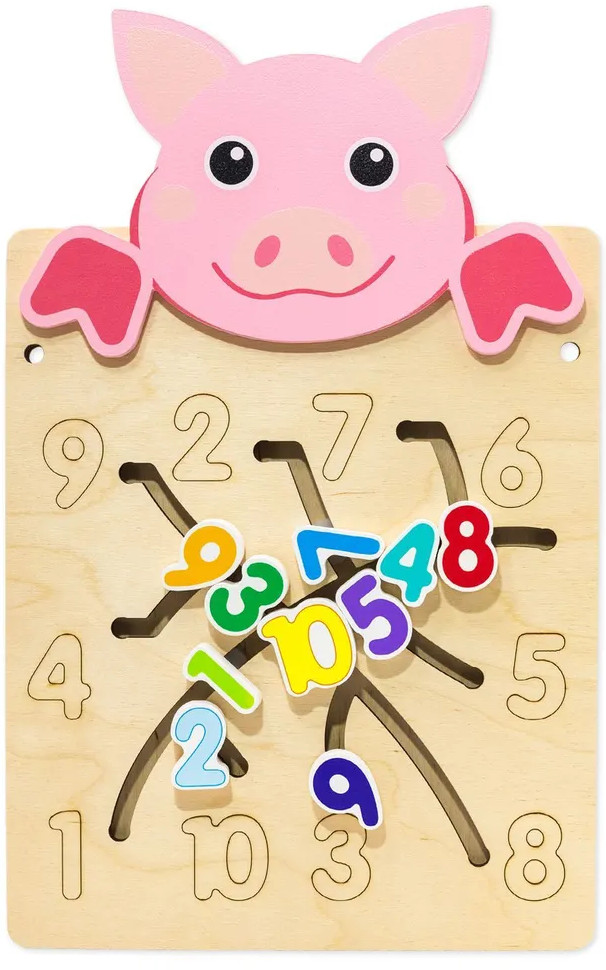 Настенный бизиборд представляет собой лабиринт с цифрами, в котором ваш ребенок сможет научиться распознавать формы и цвета. Бизиборд для мальчиков и девочек поможет им развиваться не только эмоционально, но и интеллектуально. Игрушки Монтессори уже многие годы используются в детских садах и школах по всему миру, чтобы обеспечить детям правильное развитие. Бизидоска «Свинка» подойдет как для домашнего использования, так и для использования в детских учреждениях. Это прекрасный выбор для тех, кто хочет, чтобы ребенок узнал о мире вокруг себя, играя.