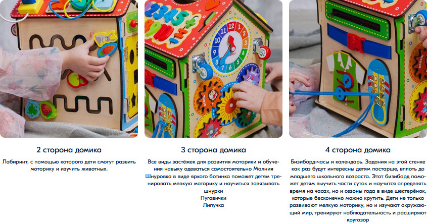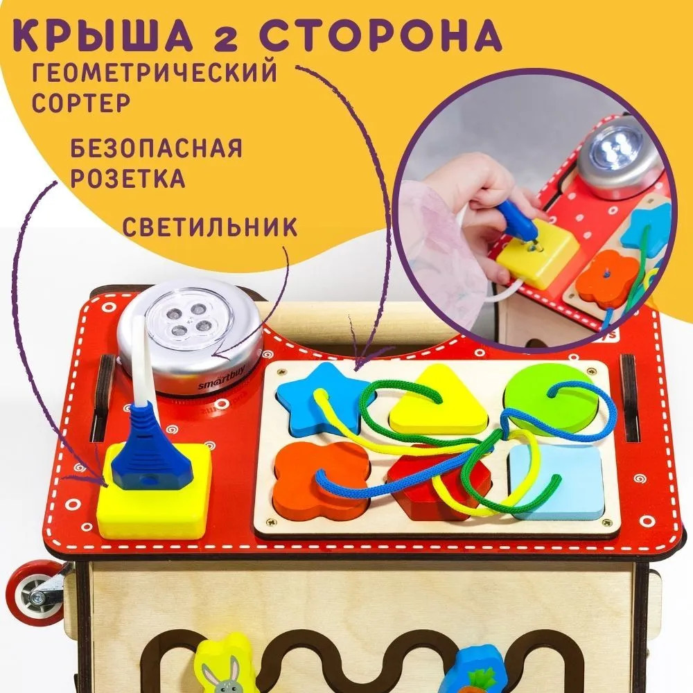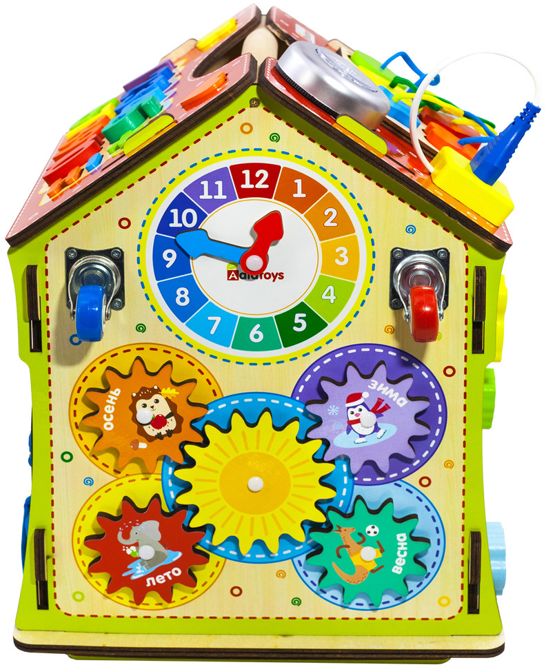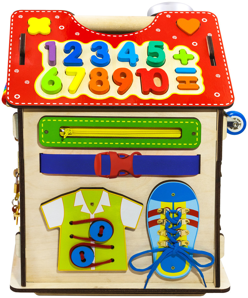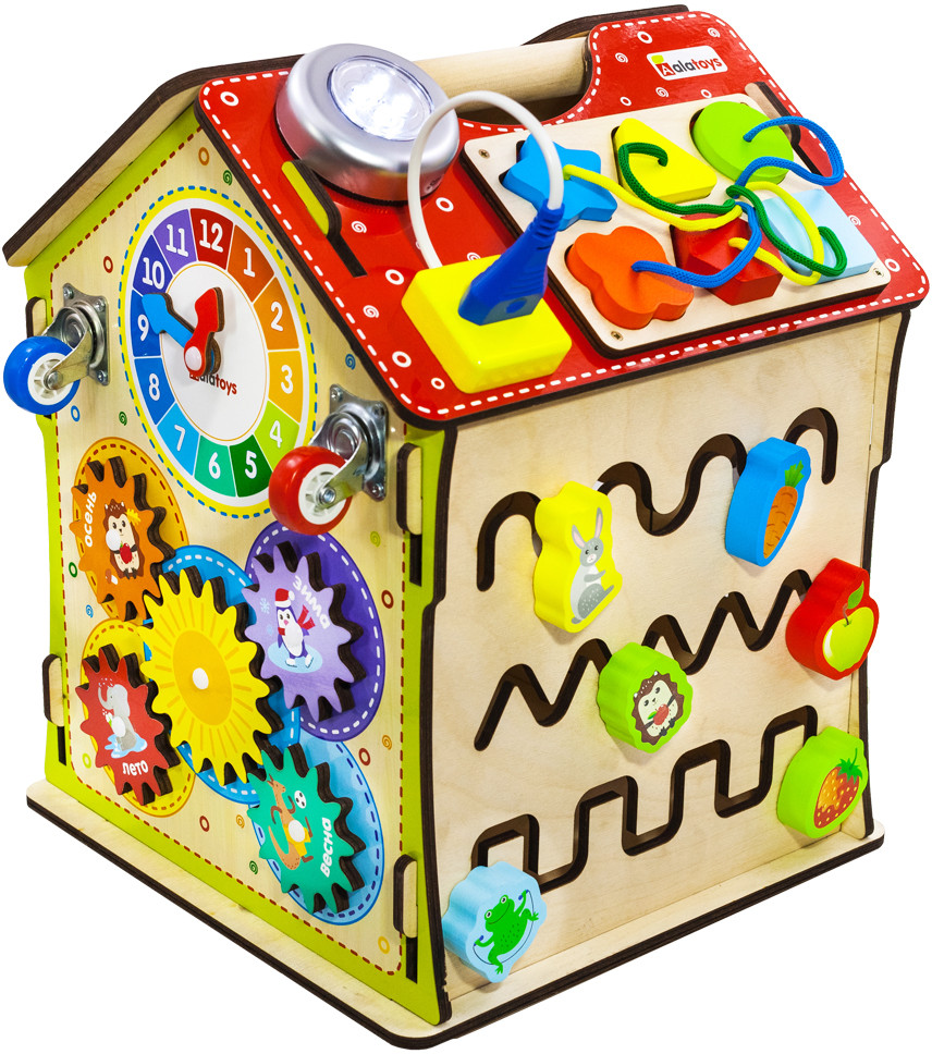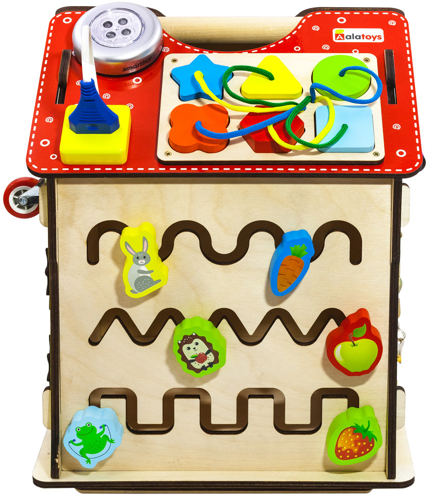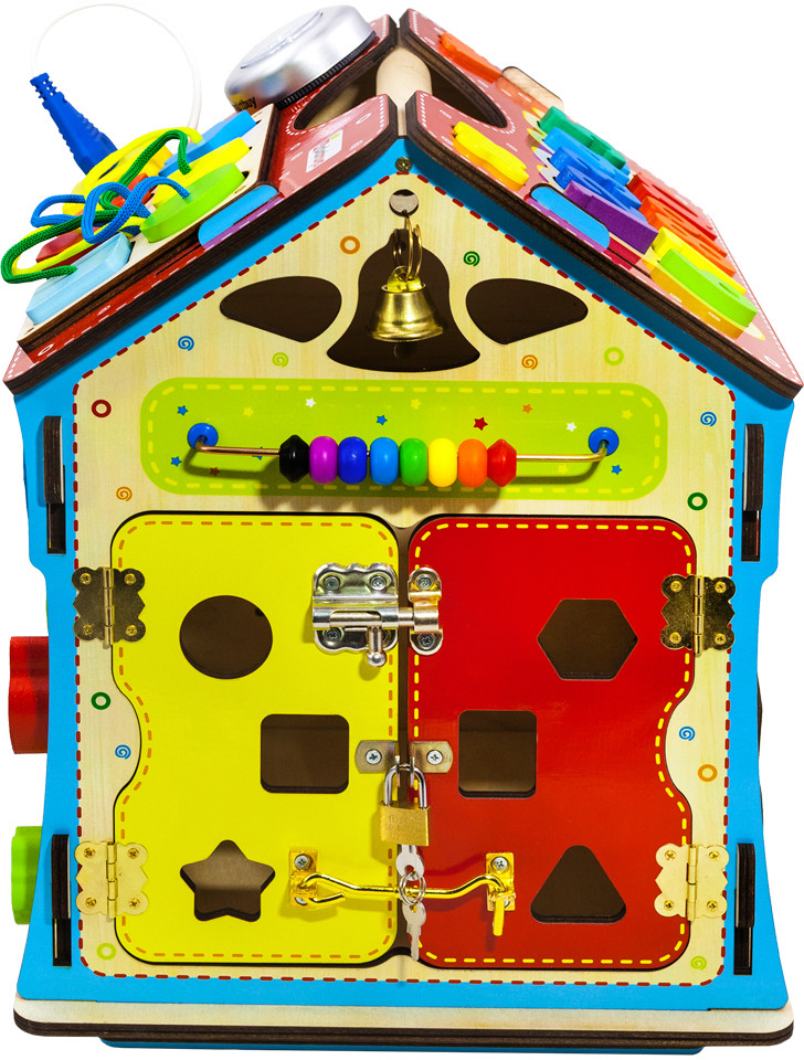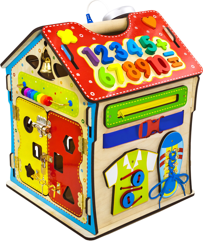 Alatoys Бизидом со светомВ данный момент этот товар отсутствует в продаже. Возможно, у нас найдется аналогичный или похожий товар здесь. Бизидом со светом — это увлекательная игра, состоящая из 6 модульных досок, созданных по методике Монтессори. На стенах бизидома вы увидите разнообразные лабиринты, колесики, шестеренки, циферблат со стрелками, колокольчик, дверцы с разнообразными замками, молнии и шнуровки. На крыше дома вы увидите сортер с разноцветными цифрами и геометрическими фигурами, розетку и светильник. Увлекательный бизидом можно использовать не только для игры, но и для хранения, ведь дверцы в нем открываются. Благодаря такой игре малыш разовьет координацию движений, моторику рук, чувствительность пальцев, изучит геометрические фигуры, цвета, цифры и счет до 10. |