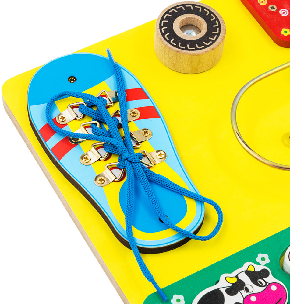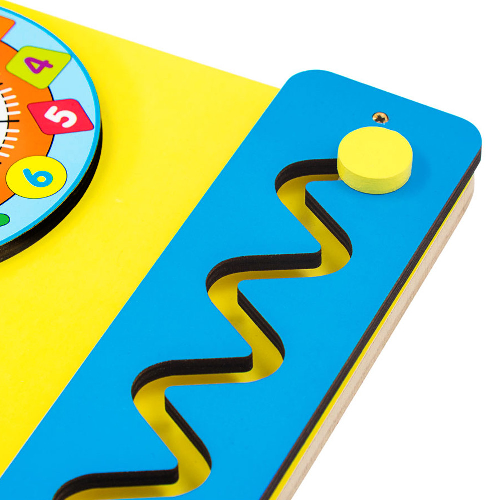 В данный момент этот товар отсутствует в продаже. Возможно, у нас найдется аналогичный или похожий товар здесь. Бизиборд — это целый набор развивающих игрушек для малышей, который помещается на одной доске размером 40×30 см. Он представляет собой огромный игровой потенциал для игр и развития детей, начиная от малышей 1 года, до более взрослых деток, которым очень долго нравится что-то перемещать, крутить, вставлять и открывать-закрывать.