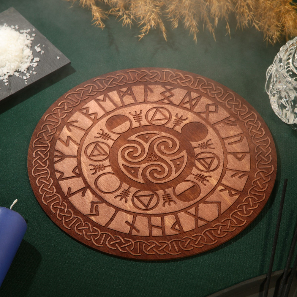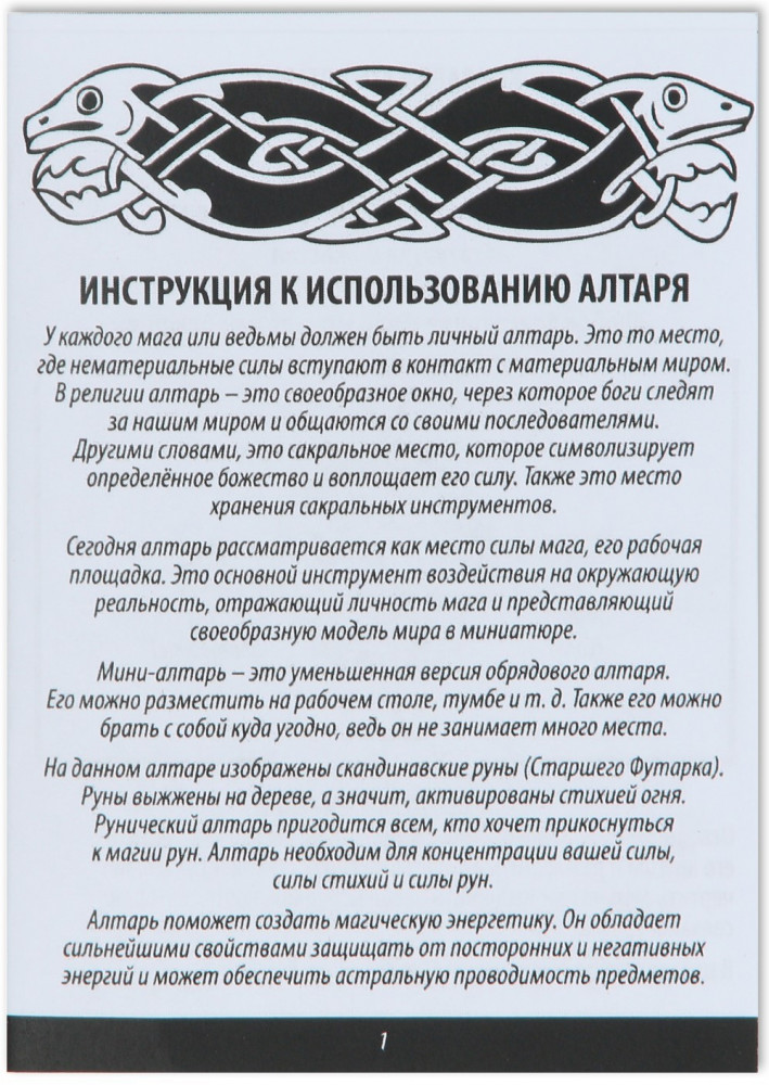 💳 Оплатить за товар можно при получении 🇰🇿 Есть бесплатная доставка по Казахстану от 1 дня 🎁 Копите бонусы с каждой покупки Серия: Гадания У каждого мага или ведьмы должен быть личный алтарь, его рабочая площадка. Это то место, где нематериальные силы вступают в контакт с материальным миром. На данном алтаре изображены скандинавские руны (Старшего Футарка). Руны выжжены на дереве, а значит активированы стихией огня. Рунический алтарь пригодится всем, кто хочет прикоснуться к магии рун. Алтарь необходим для концентрации вашей силы, силы стихии и силы рун. |