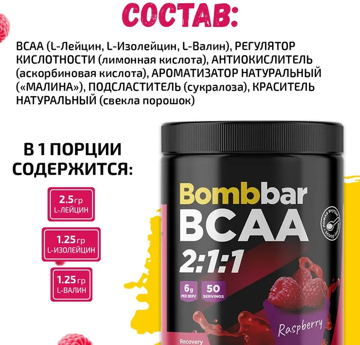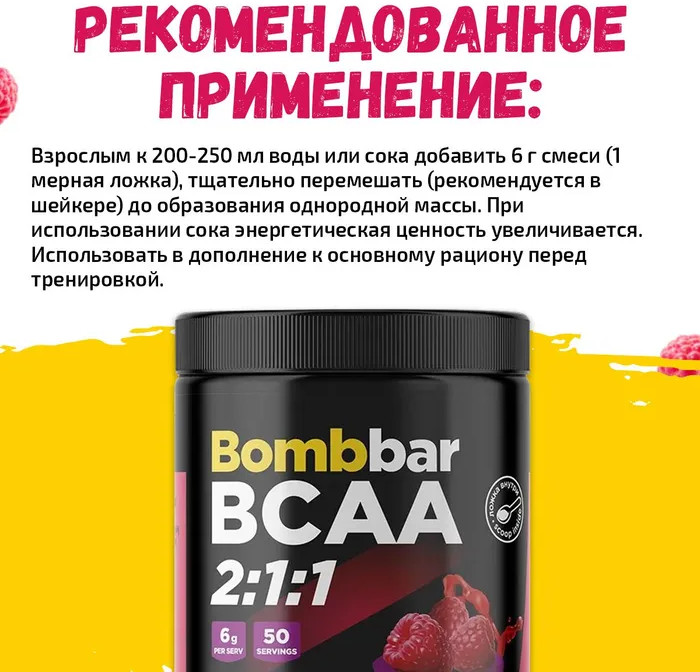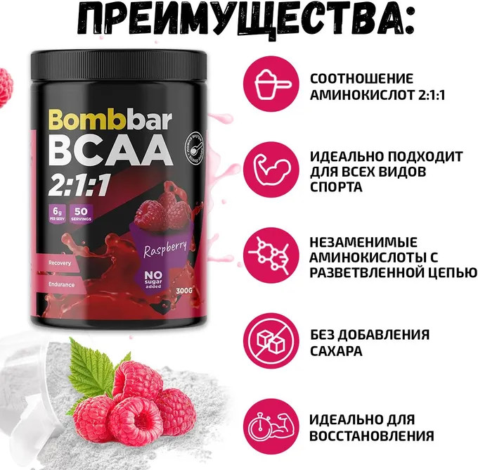 Коктейль со вкусом малины «BCAA 2:1:1» | Pro | Bombbar