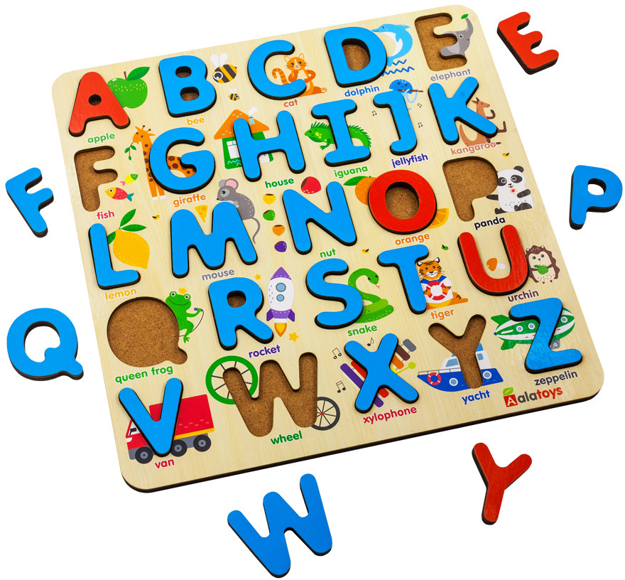 Alatoys Пазл для малышей «Азбука английская»В данный момент этот товар отсутствует в продаже. Возможно, у нас найдется аналогичный или похожий товар здесь. Пазл «Азбука английская» — это увлекательная игра в мире букв и картинок! Собирая пазл и располагая буквы в своих местах, ребенок учится соотносить форму буквы и подходящее ей место. А слово написанное рядом на английском языке, помогает ассоциировать букву с определённым предметом или животным. Игра развивает наблюдательность, усидчивость, зрительное восприятие. Постоянно манипулируя деталями, ребенок совершенствует мелкую моторику рук, что положительно влияет на развитие речи и интеллектуальных способностей. |