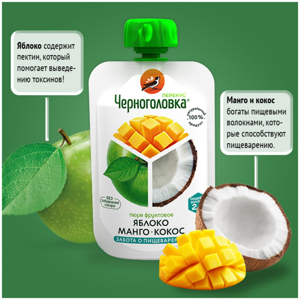 Черноголовка Бэйби Пюре «Яблоко, манго, кокос»