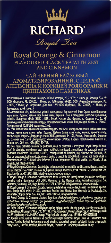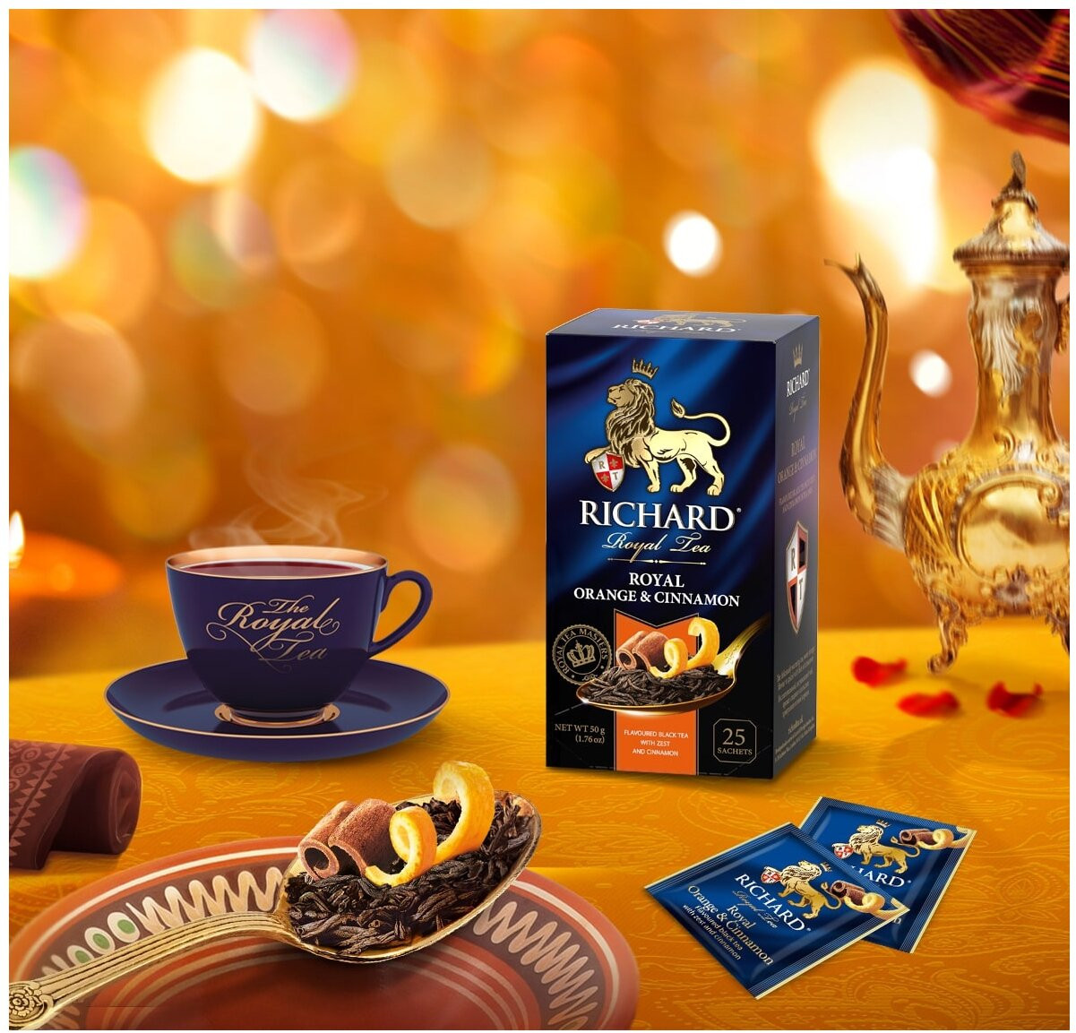 Richard Чай «Royal Orange Cinnamon»В данный момент этот товар отсутствует в продаже. Возможно, у нас найдется аналогичный или похожий товар здесь. Чай Richard Royal Orange & Cinnamon — подарок, доставленный из дальних колоний специально для Её Величества, и ставший неотъемлемой частью вечернего королевского чаепития. |