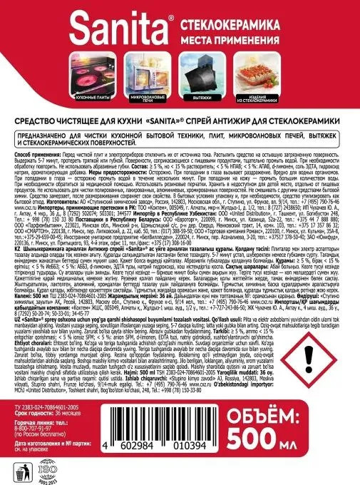 Sanita Спрей для стеклокерамики «Антижир»-20% +15 смывается быстро не воняет плита блестит
