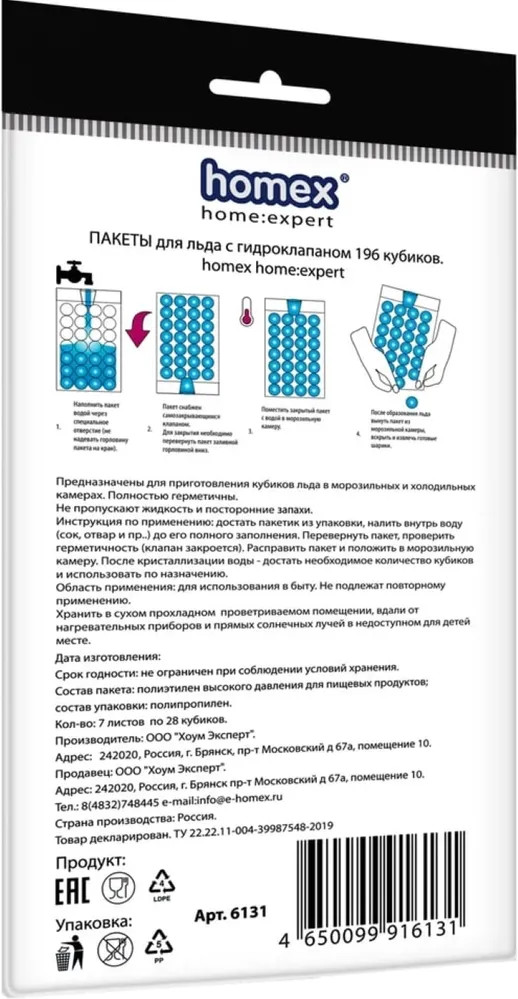 Homex Пакеты для льда «Очень холодные»-20% +16