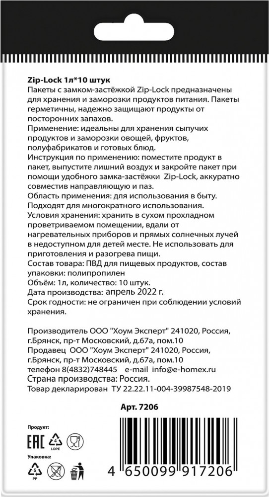 Homex Пакеты с застежкой Zip-Lock для заморозки и хранения «Очень надежные»