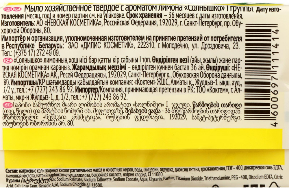 Невская Косметика Мыло хозяйственное с ароматом лимона «Солнышко»