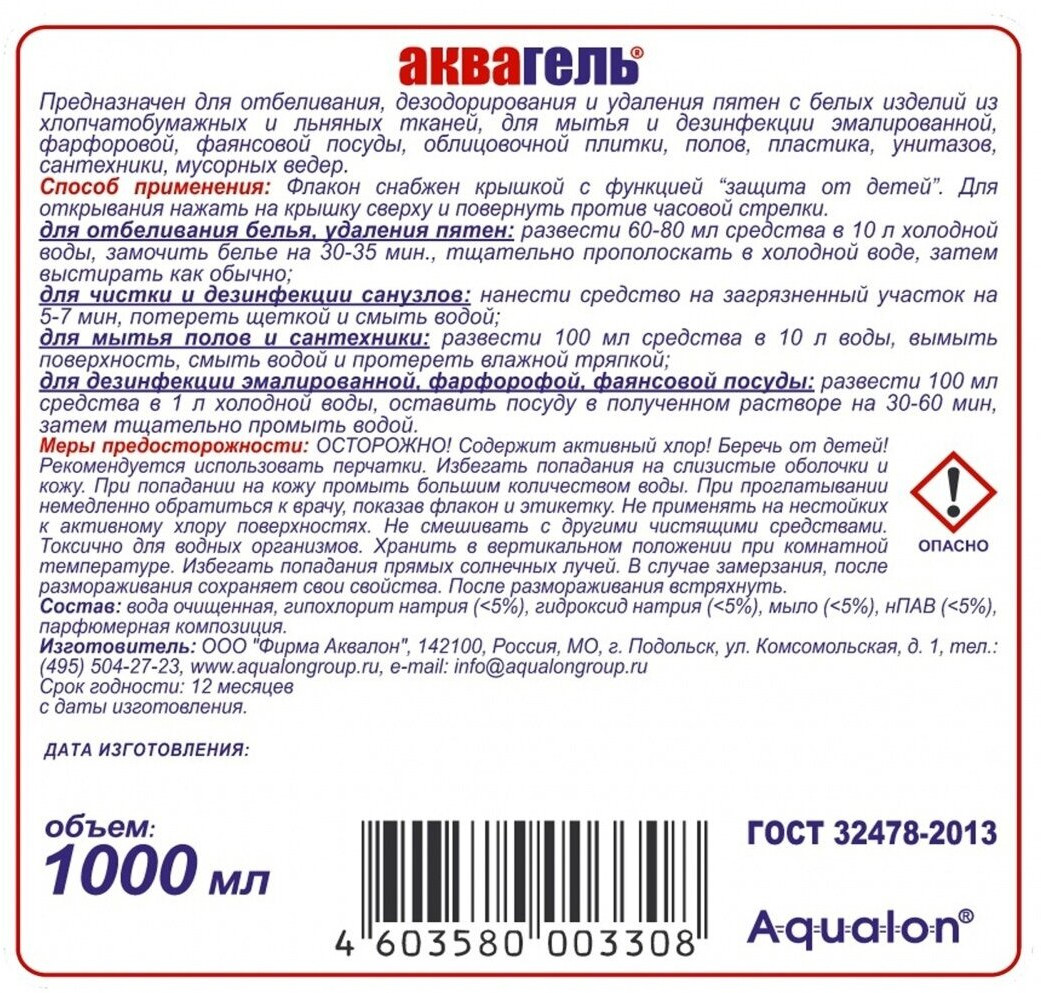 💳 Оплатить за товар можно при получении 🇰🇿 Есть бесплатная доставка по Казахстану от 1 дня 🎁 Копите бонусы с каждой покупки Высокоэффективное средство для бережного отбеливания, дезодорирования, дезинфекции и удаления пятен с белых изделий из хлопчатобумажных и льняных тканей, для мытья и дезинфекции эмалированной и фаянсовой посуды, облицовочной плитки, полов, пластика, унитазов, сантехники и мусорных ведер. Имеет структуру геля с высоким содержанием активного хлора. |