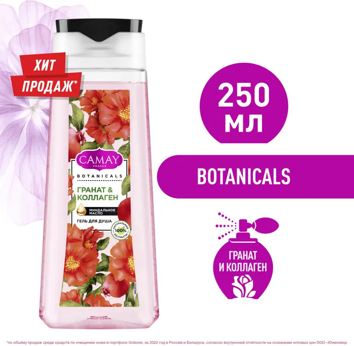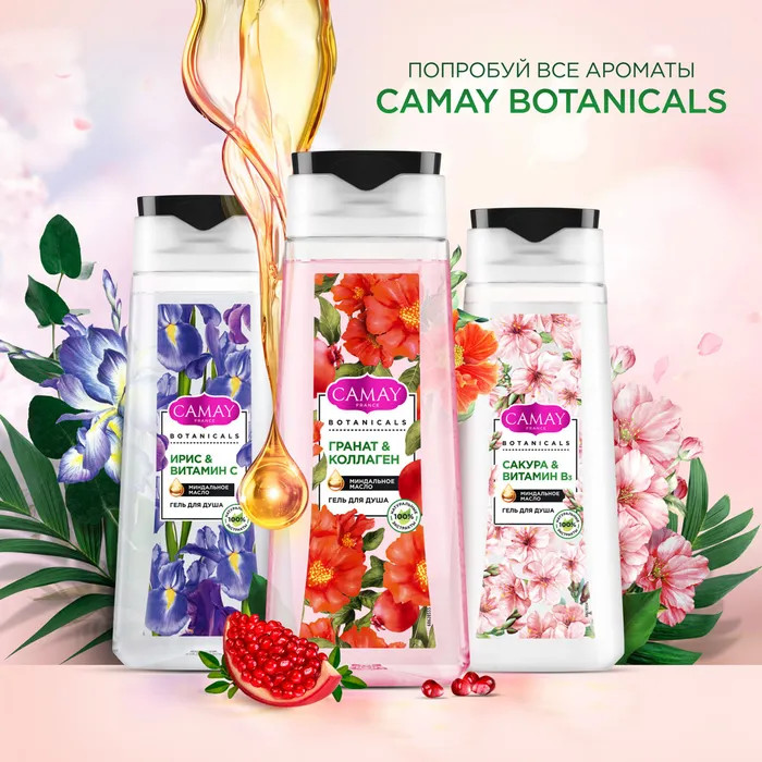 Camay Гель для душа с миндальным маслом «Гранат & коллаген»
